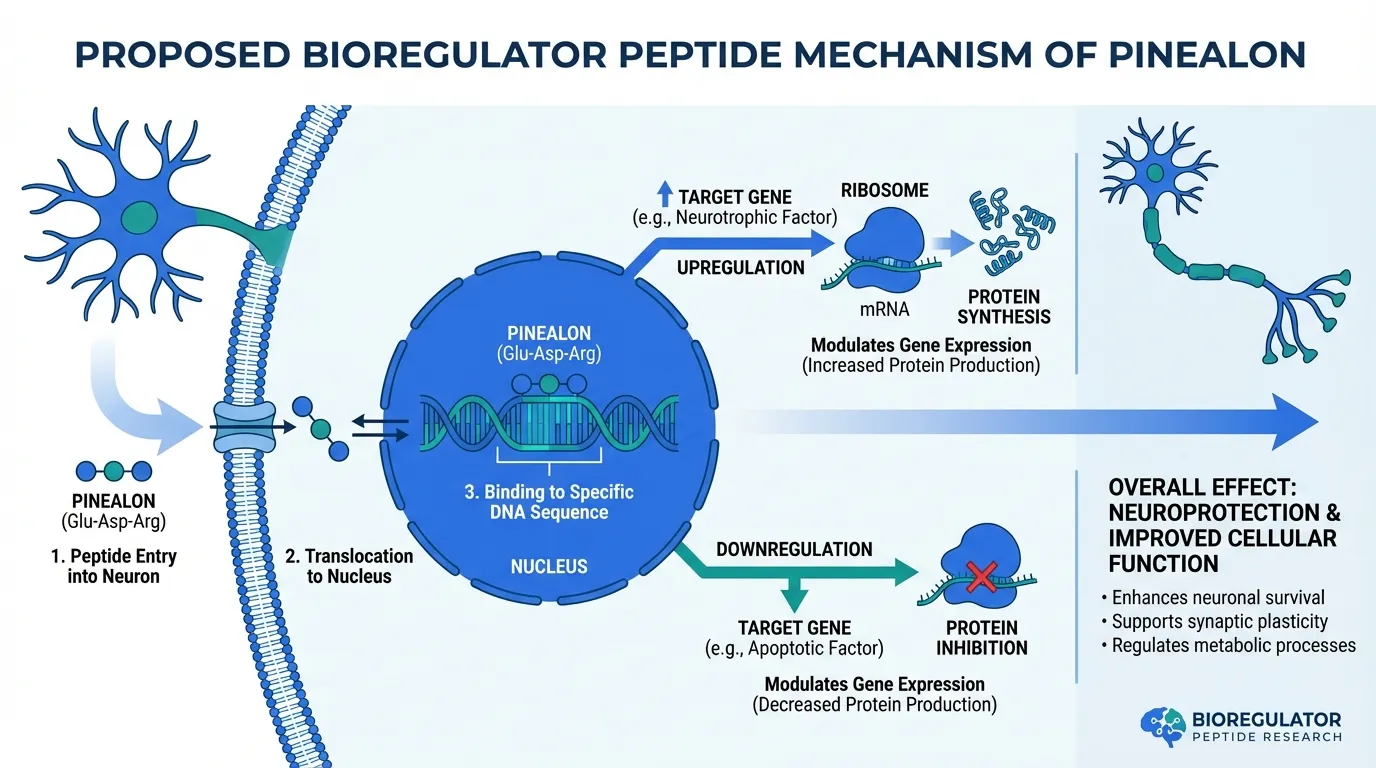 Evidence Level: Preclinical; limited human data Primary Mechanisms: Bioregulator peptide affecting CNS gene expression Administration: Typically oral or sublingual