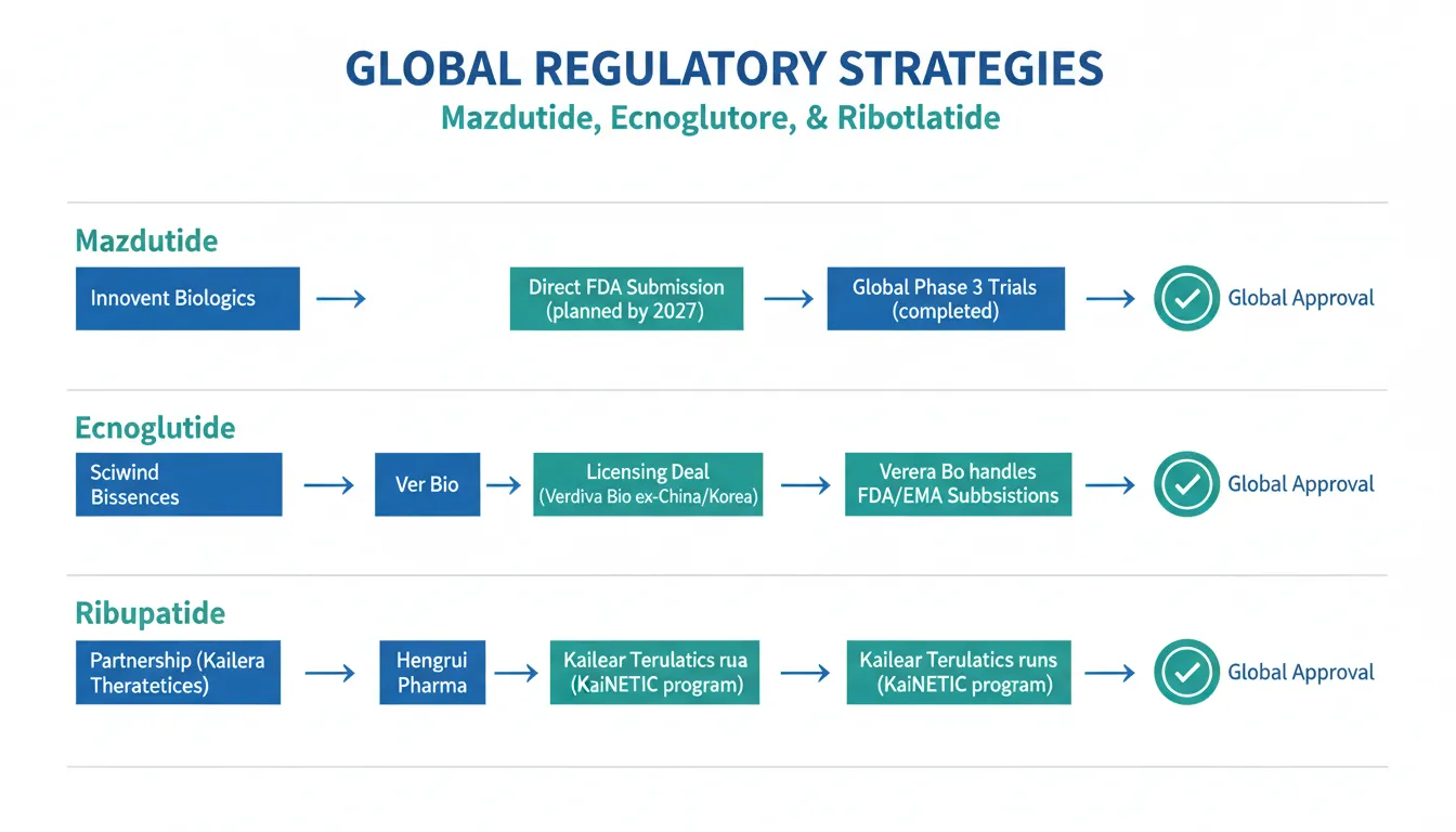 - Mazdutide: Direct FDA filing planned (Innovent has US-based regulatory experience from partnering with Lilly on other programs)
