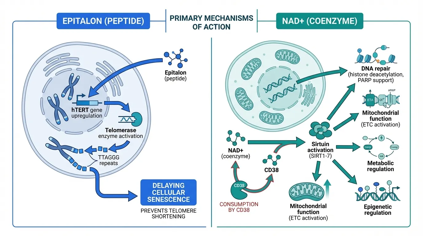 Epitalon vs NAD+: Telomerase Activation vs Sirtuin Pathway