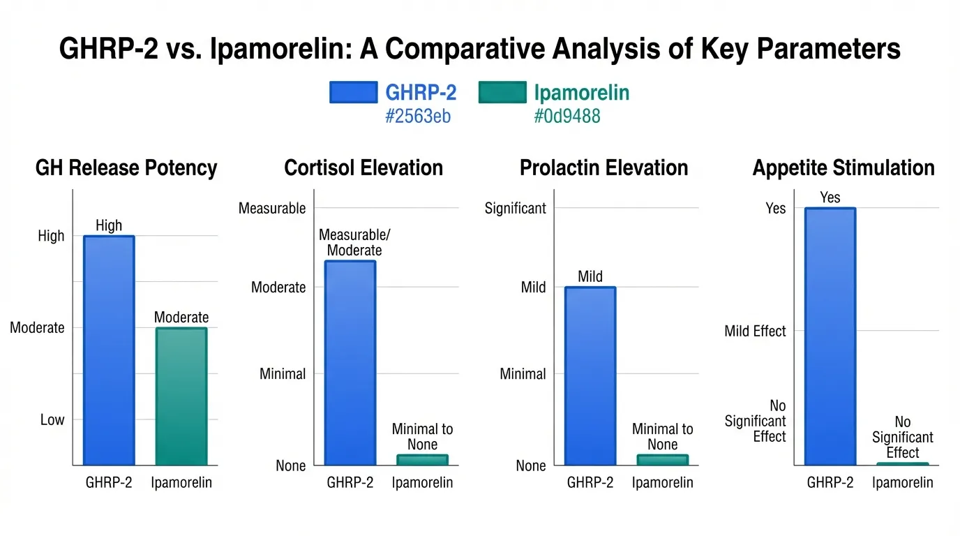 For most research applications involving sustained GH optimization protocols, current evidence favors ipamorelin's clean release profile over GHRP-2's greater potency, as the chronic effects of repeated cortisol stimulation may outweigh the marginal GH amplitude advantage.