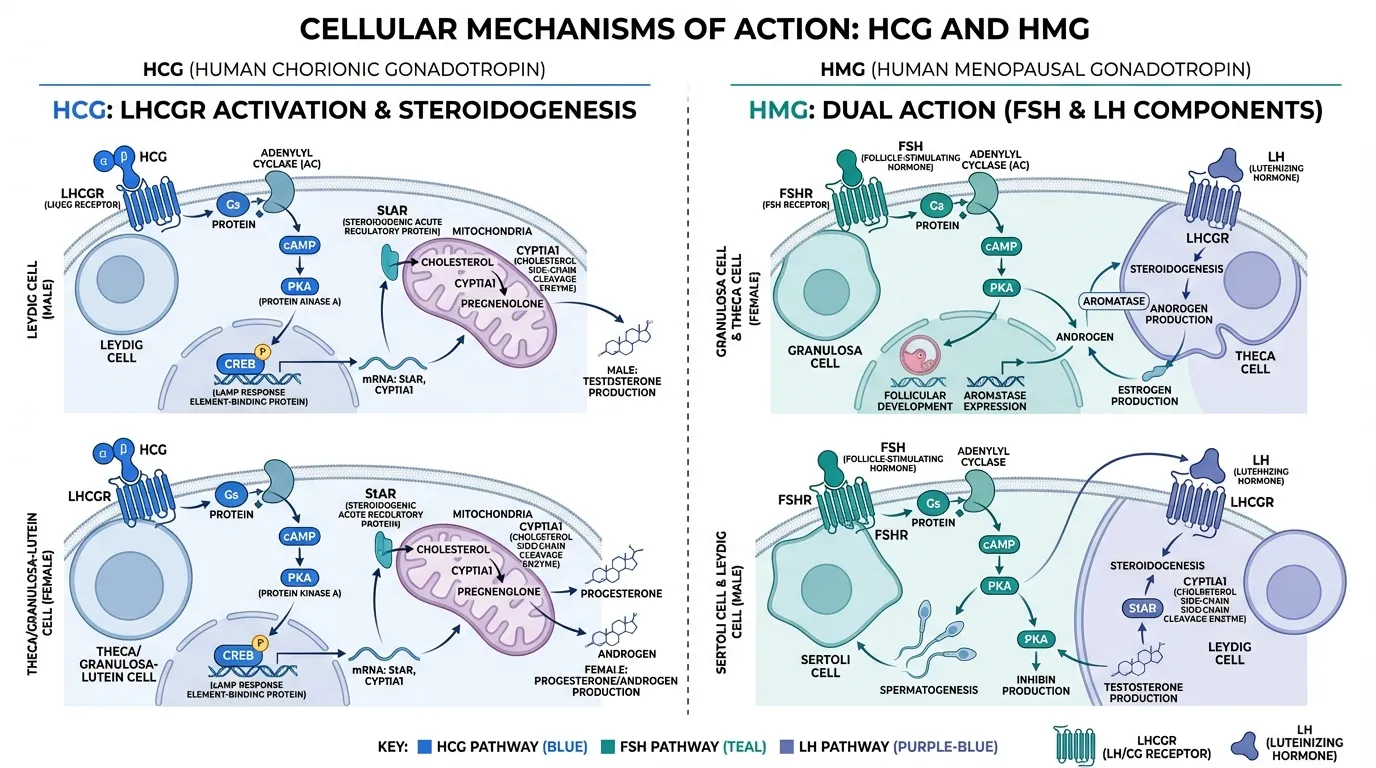 HCG vs HMG compared for fertility and testosterone support — mechanisms, clinical applications, and reproductive endocrinology uses.