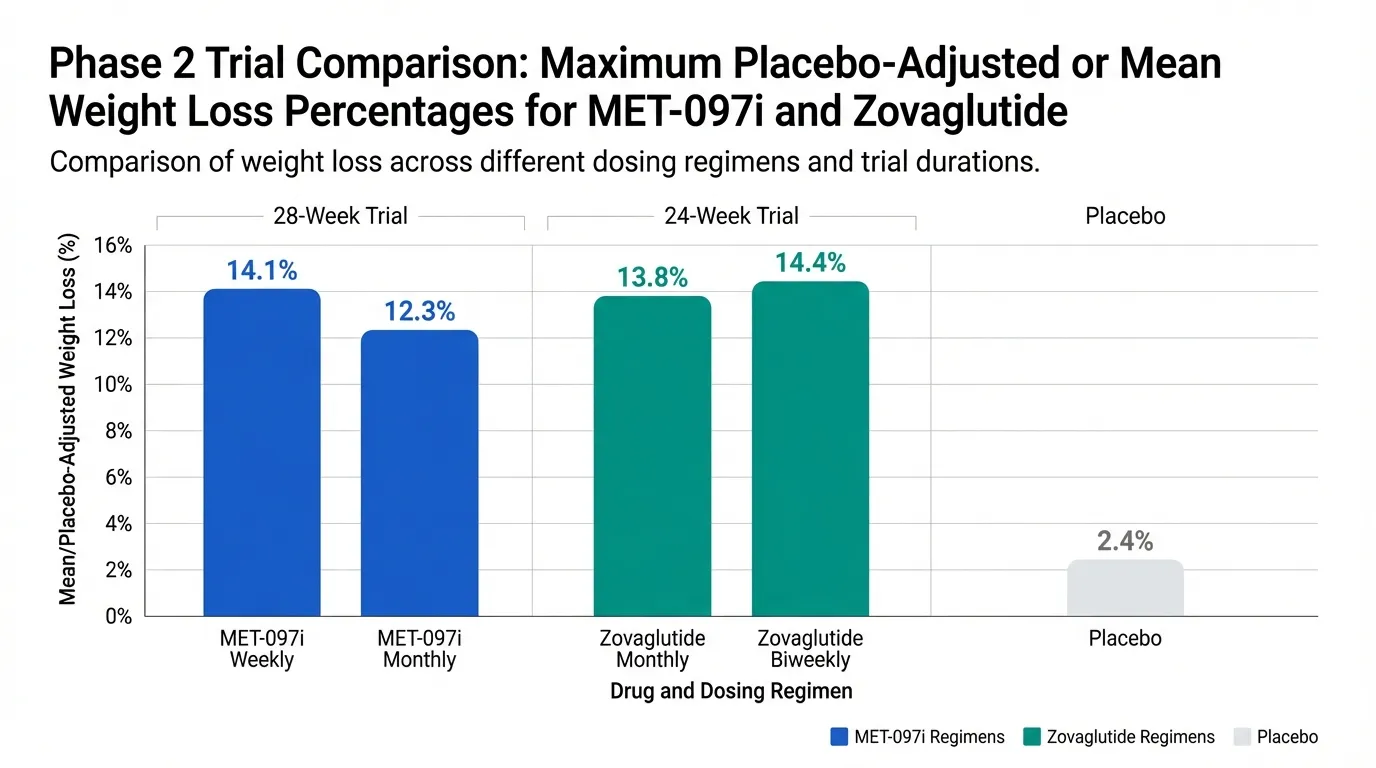 | Metric | MET-097i (VESPER-1/3) | Zovaglutide (Phase 2) |