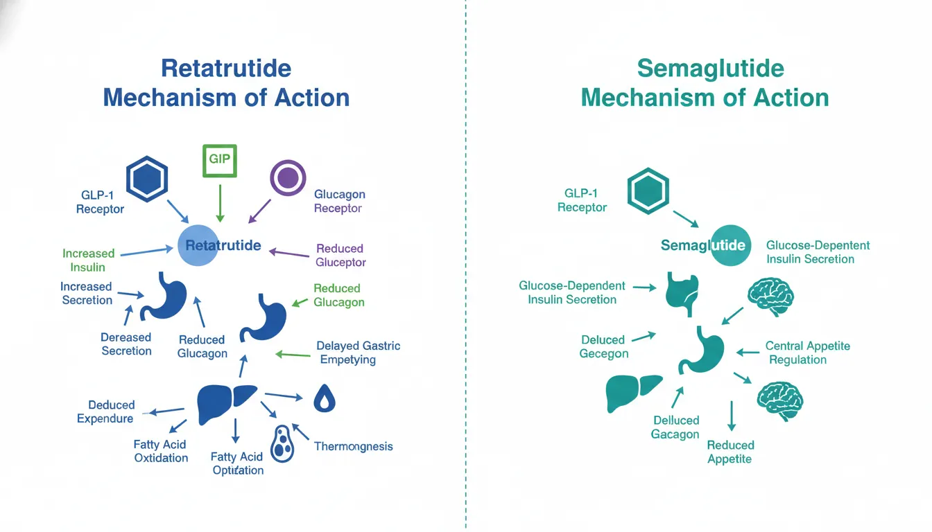 This comparison examines whether retatrutide's triple agonist mechanism offers clinically meaningful advantages over semaglutide's proven single-agonist approach, while acknowledging the fundamental asymmetry in evidence quality between a fully approved drug and an investigational compound.