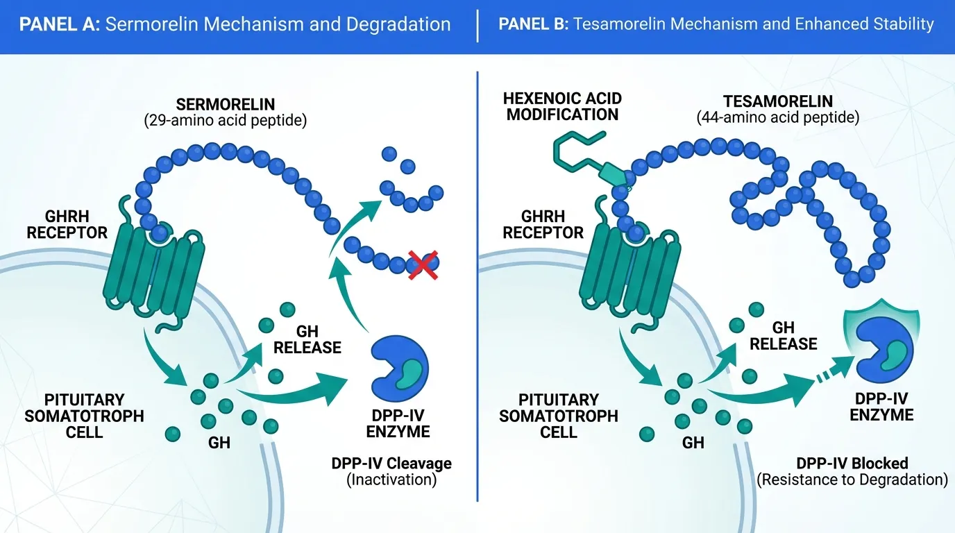 This comparison is particularly relevant because both peptides represent the GHRH pathway approach to GH stimulation, which preserves physiological pulsatile GH release and feedback mechanisms -- a key advantage over direct GH replacement.