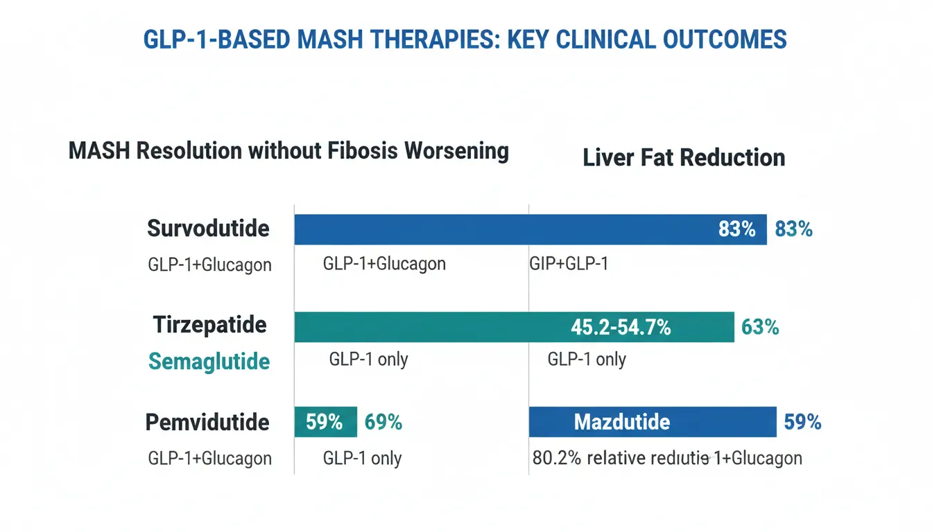 Tirzepatide's strong MASH results likely reflect its profound weight loss and metabolic improvement rather than direct hepatic glucagon signaling. The higher resolution rates compared to semaglutide may relate to greater total weight loss and GIP-mediated metabolic effects.