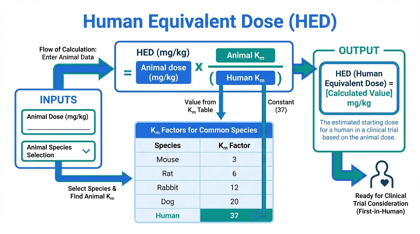 HED (mg/kg) = Animal dose (mg/kg) x (Animal K_m / Human K_m)